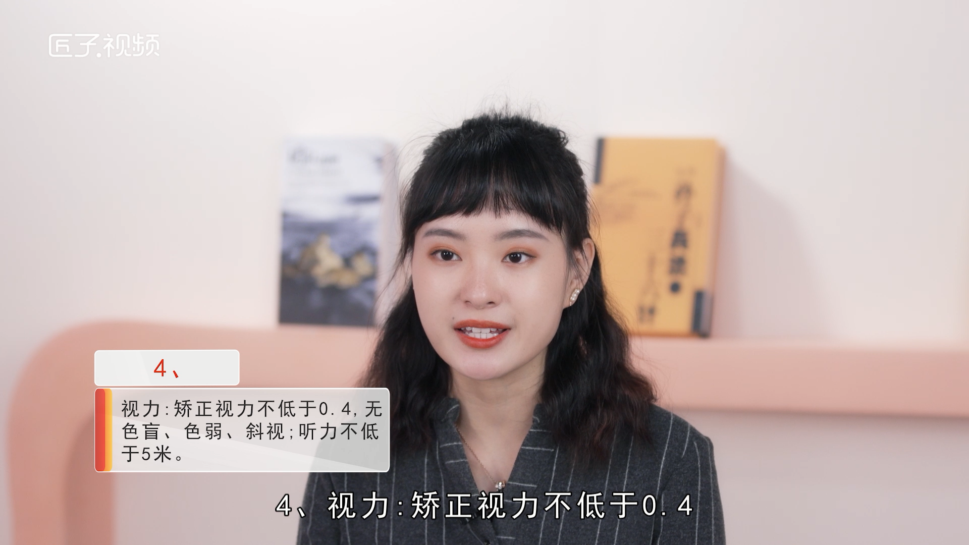 4、视力:矫正视力不低于0.4,无色盲、色弱、斜视;听力不低于5米;