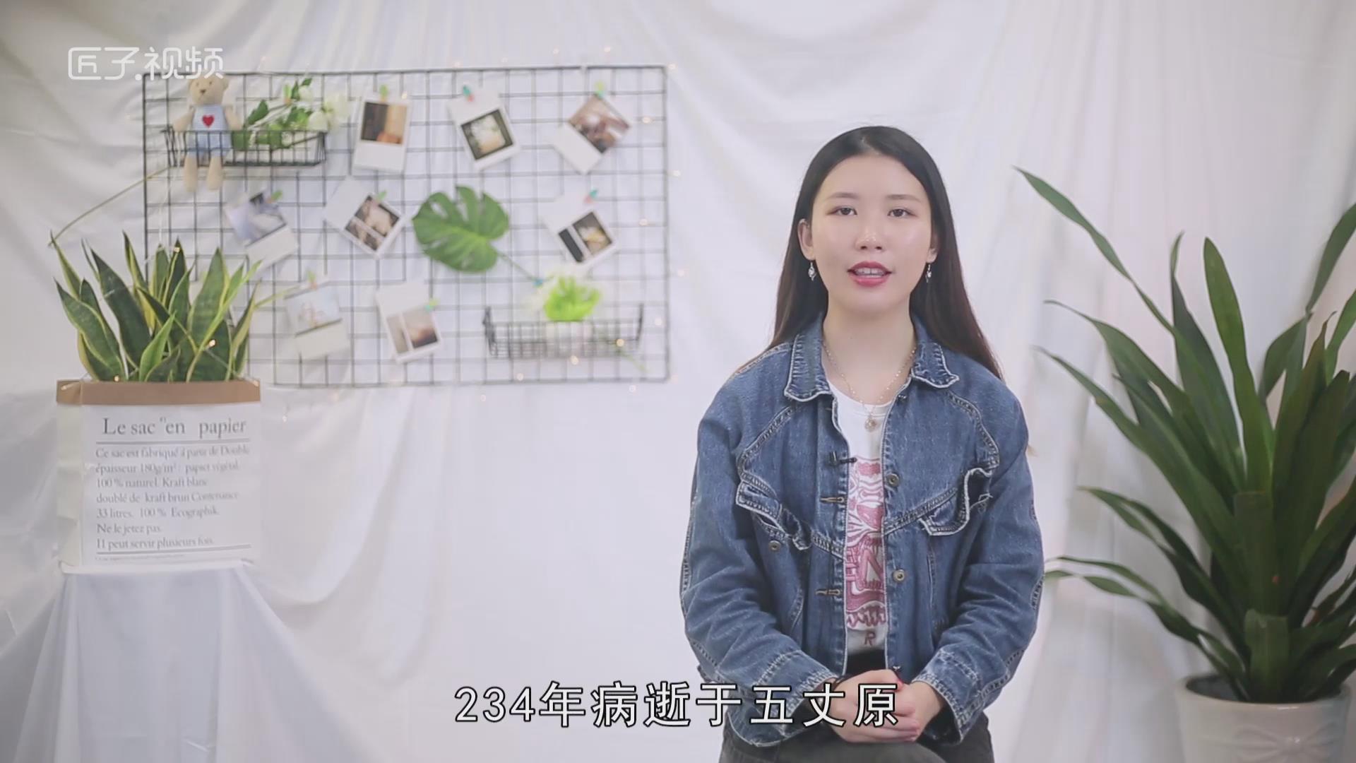 终因积劳成疾,234年病逝于五丈原,享年54岁。诸葛亮散文代表作有《出师表》《诫子书》等。曾发明木牛流马、孔明灯等,并改造连弩,叫做诸葛连弩。