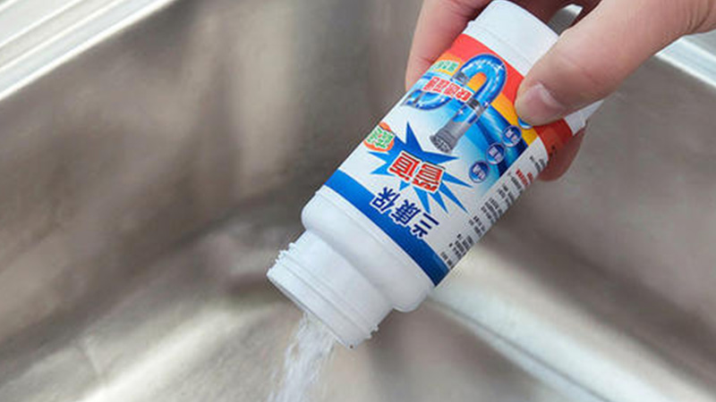 7、使用管道疏通剂来清除管道中的油腻堵塞物,直接到进下水道里,等待一会用净水冲干净。